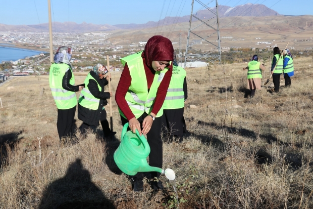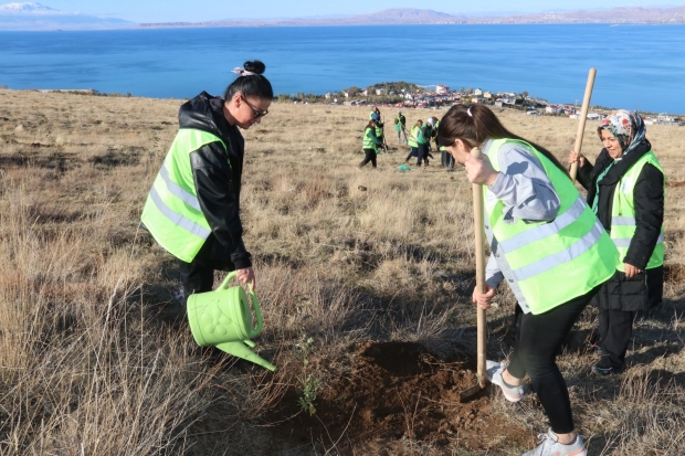Edremit Belediyesi Kadın Politikaları Müdürlüğü, 25 Kasım Kadına Yönelik Şiddetle Mücadele Günü kapsamında Erdemkent Mahallesi Kent Ormanı’nda anlamlı bir etkinlik düzenledi. Etkinlikte yüzlerce meşe fidanı, Van Gölü’nün mavisine karşı toprakla buluşturuldu.