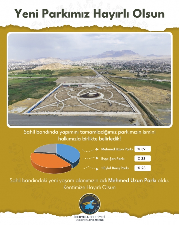 Toplantının son gündem maddesi ise yeni sahil parkına isim verilmesi oldu. Kent Tarihine Uygun İsim Araştırma Komisyonu’nun önerileri doğrultusunda park için Ayşe Şan, Mehmet Uzun ve 1 Eylül Dünya Barış Parkı seçenekleri halk oylamasına sunuldu. Yapılan oylamada, Kürt edebiyatının önemli isimlerinden Mehmet Uzun öne çıktı.