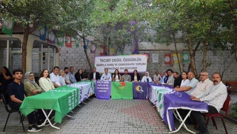 Şevin Polat, “Onurlu bir barışın inşası için ne gerekiyorsa halkımız, partilerimiz ve kurumlarımız hazırdır. Perspektifimiz barış ve demokratik toplum inşasıdır. Bu bağlamda sokak ve mahallelerimizden başlayarak barışı örmeye çalışıyoruz. ‘Tecrit Değil, Özgürlük Kazanacak’ şiarıyla 23 Ağustos Cumartesi günü akşam saat 17.00’de Barış ve Demokratik Toplum mitingi düzenleyeceğiz. TJA, DBP ve DEM Parti öncülüğünde gerçekleştireceğimiz bu mitingde tüm halkımızı, barıştan yana demokratik kitle örgütlerini, siyasi partileri, sendikaları ve tüm kurum ve kuruluşları davet ediyoruz” dedi.