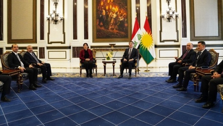 Erbil’de bulunan Pervin Buldan başkanlığındaki DEM Parti İmralı Heyeti, Federe Kürdistan Bölgesi Başkanı Neçirvan Barzani tarafından kabul edildi.