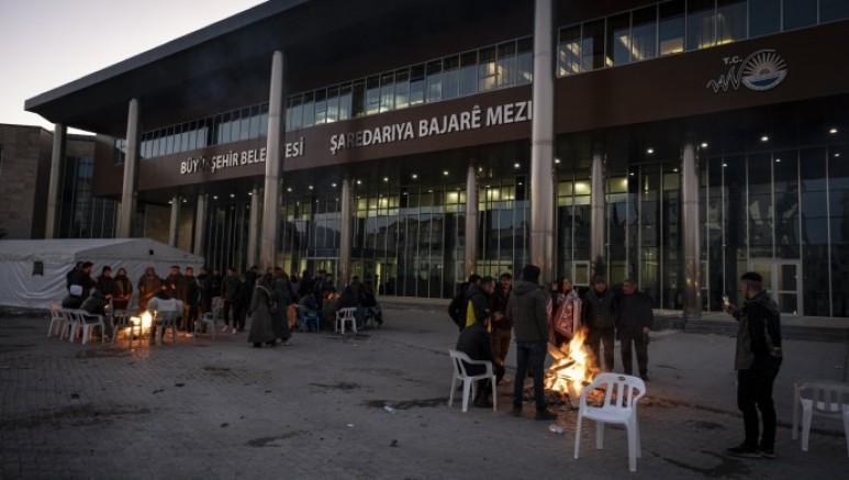 Halkların Eşitlik ve Demokrasi Partisi (DEM Parti) yönetimindeki Wan Büyükşehir Belediyesi Eşbaşkanı Abdullah Zeydan’a 3 yıl 9 ay ceza verilmesine karşı belediye önünde başlatılan nöbet eylemi 3'üncü gününde devam ediyor. Hava sıcaklığının eksi 12 dereceye kadar düştüğü gece saatlerinde de kitlenin coşkusu dinmedi. Gençler, yaktıkları ateş etrafında saatlerce halaya durdu. Birçok yurttaş da belediye içerisinde yere serdikleri karton ya da sandalyeler üzerinde nöbet eylemlerine devam etti. Van Büyükşehir Belediyesi Eşbaşkanları Neslihan Şedal ve Abdullah Zeydan ile Amed Büyükşehir Belediyesi Eşbaşkanı Doğan Hatun da gençlerle sohbet ederek, sabahladı.
