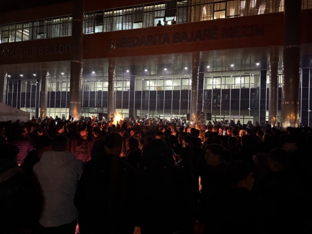 Zeydan'a hapis cezası verilmesinin ardından Vanlılar belediye binasının önüne akın etti. Gün boyu kitlenin yoğunluk oluşturduğu belediyenin önünde kayyum atanması ihtimaline karşı çadırlar kurularak nöbet eylemi başlatıldı. Eyleme Van Büyükşehir Belediye Eşbaşkanları Abdullah Zeydan, Neslihan Şedal, DEM Parti, DBP il eşbaşkanları, milletvekilleri, TJA aktivistleri, Van Emek ve Demokrasi Platformu'na bağlı STK yönetici ve üyeleri yanı sıra yüzlerce kişi belediye binasının önündeki bekliyişi sürüyor. -10c soğuk havaya rağmen kayyum nöbetini sürdüren kitle ateşler yakarak halaylar çekip sloganlar atarak kayyuma karşı tepkilerini dile getirmeye devam ediyorlar.