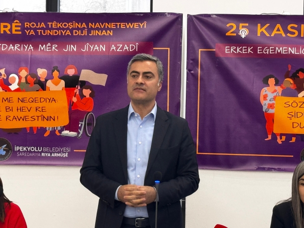 Eşbaşkan Abdullah Zeydan ise konuşmasında, 25 Kasım haftası dolayısıyla erkek şiddetini kınadı. Rojin Kabaiş ve şiddet nedeniyle yaşamını yitiren tüm kadınlar adına, bu "eril akla" karşı mücadelelerini büyüteceklerinin sözünü verdi. Zeydan, "Erkekler olarak bu tekçi, düşman zihniyeti başta biz erkeklerin kendi vicdanında öldürmesi gerekiyor" dedi.