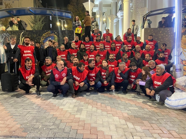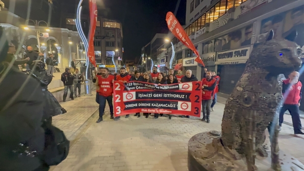 Birçok siyasi parti ve STK’nın destek verdiği işçiler, Sanat Sokağı’ndan sendika binalarına bir yürüyüş düzenlemek istemeleri polis engeline takıldi. Polis sokağı kalkanlarla barikat kurarken işçiler de engellemeyi slogan ve halaylarla protesto etti. 7 saatlik bekleyişin ardından işçiler yürüyüşlerini gerceklestirerek basin aciklamasi duzenledi. Açıklamayı katılanlar adına Servet Arslan yapti. Arslan aciklamasinda işten cikarmalari ve engellemeyi asla kabul etmeyeceklerini soyledi .