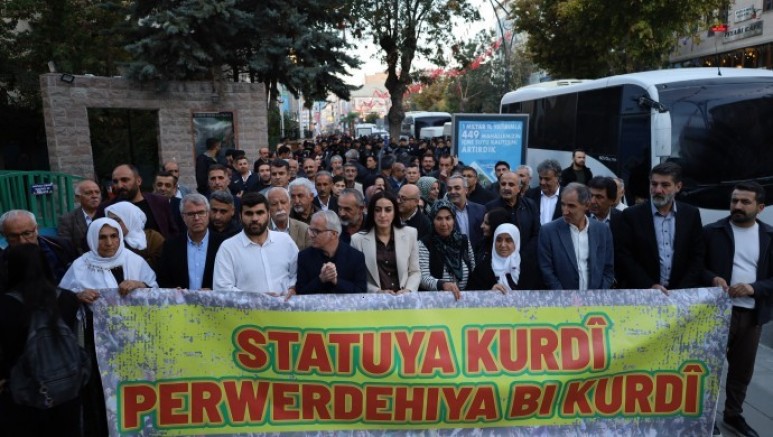 Devamında konuşan KURDÎGEH Eşbaşkanı Eşbaşkan Mesut Kerdiş, demokratik, eşitlikçi ve barışçıl bir toplumun, halkların temel haklarına, diline ve kültürüne saygı duyularak oluşabileceğine vurgu yaptı. Kürt Halk Önderi Abdullah Öcalan tarafından başlatılan “Barış ve Demokratik Toplum” sürecine değinen Kertiş, Abdullah Öcalan’ın demokratik Cumhuriyet için yeni bir imkan sunduğunu belirtti. Kertiş, “Biz de bu çerçevede Kürt dil kurumları, insan hakları savunucuları olarak, en temel hakkımız olan anadilimizde eğitim, Kürtçeye statü ile barışçıl yasa taleplerimizi kamuoyuyla paylaşıyoruz. Milyonlarca insanın konuştuğu Kürtçenin eğitim dili olması en temel haklarımızdandır. Bu durum demokratik entegrasyonu ve kültürel kimliğin güçlenmesini de sağlayacaktır” diyerek uluslararası yasalara dikkati çekti.