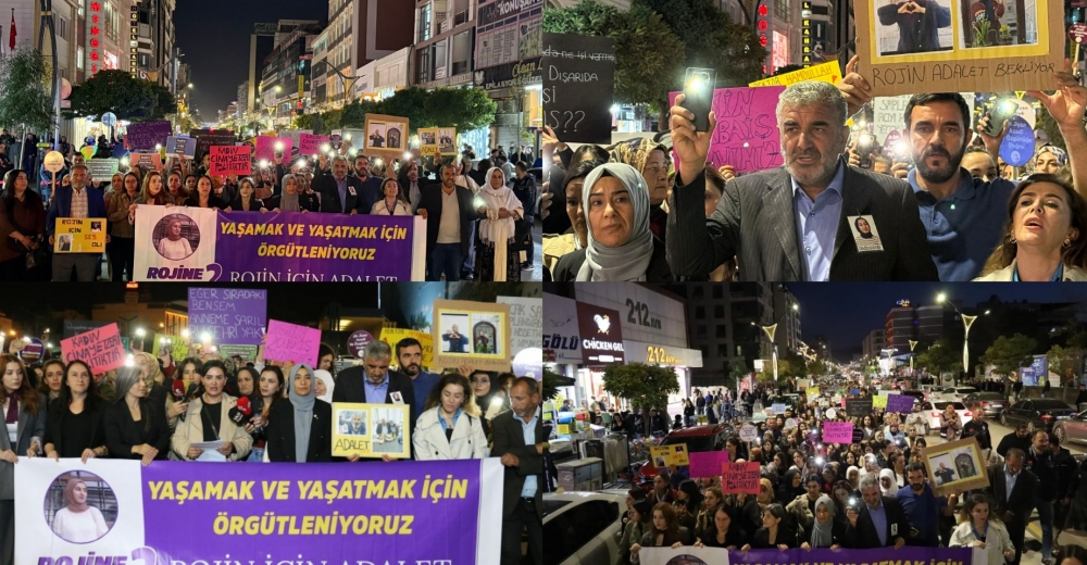 Yürüyüş için Wan AVM önünde toplanan kitle ellerinde, “Rojin’e ne oldu?”, “Rojin adalet bekliyor”, “Rektör Hamdullah Şelvi hesap ver DNA’lar kimin?” yazılı dövizler taşıdı. “Jin jiyan azadî” sloganıyla başlayan yürüyüşte sık sık “Bijî berxwedana jinan”, “İntihar değil bu bir cinayet” sloganları yükseldi. “Yaşamak ve yaşatmak için örgütleniyoruz”, “Tekoşîna li dijî qirkirina jinê wê azadiyê biafirîne” pankartını açan binlerce kişi, “Erkek vuruyor devlet koruyor” sloganı attı.