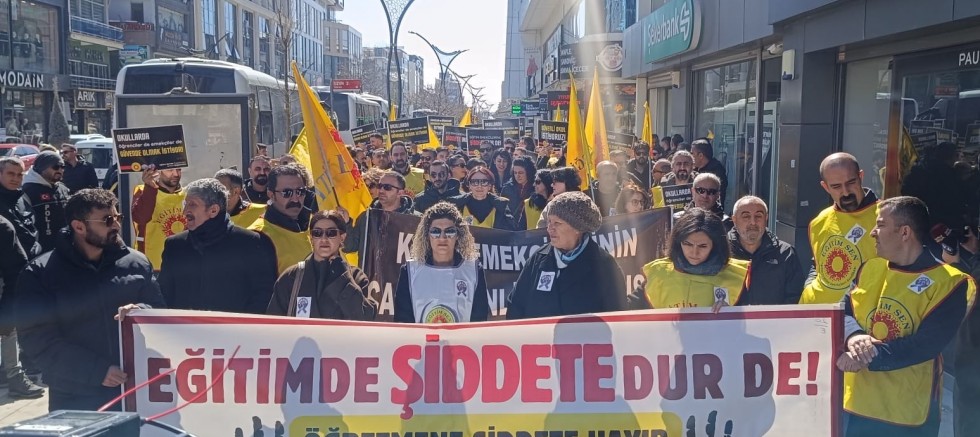 Türkiye'de okullarda yaşanan ve son olarak İstanbul Çekmeköy’de öğrencisi F.S.B. (17) tarafından bıçaklanarak ağır yaralanan ve kaldırıldığı hastanede hayatını kaybeden öğretmen Fatma Nur Çelik’in katledildiği şiddet olaylarına karşı Van'da yürüyüş ve basın açıklaması düzenlendi.