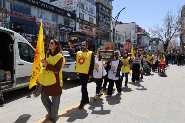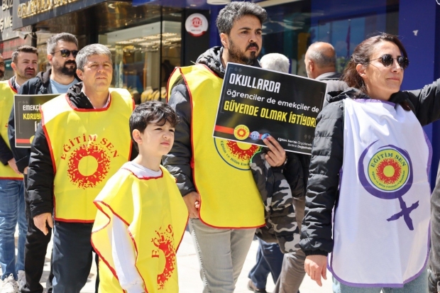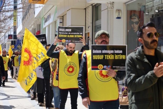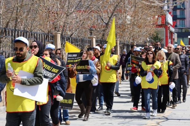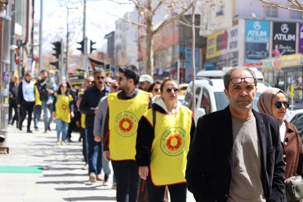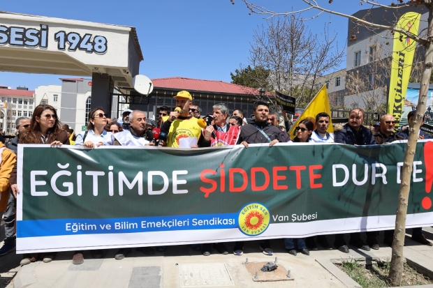 Van'da Eğitim-Sen öncülüğünde KESK bileşenleri tarafindan okullarda gerçekleşen şiddet olaylarına karşı 'İnsan zinciri' eylemi gerceklestirildi.