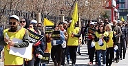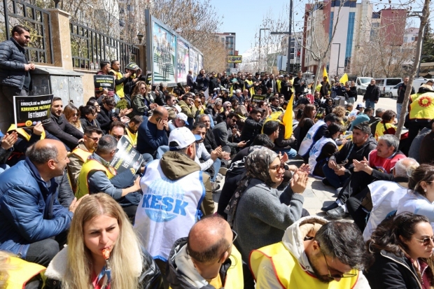 KESK binasi önünde biraraya aralarinda öğrenci ve velilerinin de olduğu kitle buradan Van Atatürk Lisesi önüne kadar bir 'insan zinciri' duzeniyle yürüdü.