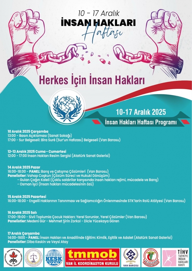 Van’daki insan hakları kurumları, yaşam hakkından ifade özgürlüğüne kadar birçok alanda ağır ihlaller yaşandığını belirterek işkence, tecrit ve kayyım uygulamalarının derhal sonlandırılması çağrısı yaptı. Açıklamada Türkiye’de hak ihlallerinin derinleştiği de belirtildi.