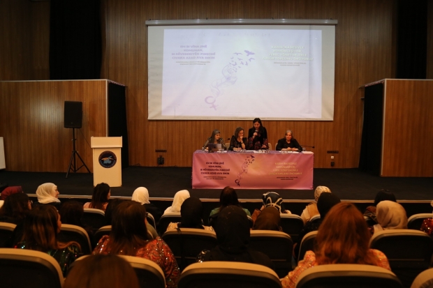 Van’da Halkların Eşitlik ve Demokrasi Partisi (DEM Parti) Demokratik Yerel Yönetimler Kurulu “Kadın İradesiyle Komünleşiyor, Yerel Yönetimlerle Özgür Toplumu Örüyoruz” şiarıyla Kadın Konferansı düzenledi. İpekyolu Belediyesi’ne bağlı Berivan Kültür Merkezinde düzenlenen konferansa Van ve Hakkari belediye eşbaşkanları ile meclis üyeleri, Tevgera Jinen Azad (TJA), Evin Kadın Kooperatifi, Medeniyetler Beşiğinde Yakınlarını Kaybedenlerle Yardımlaşma ve Dayanışma Derneği (MEBYA-DER), Tutuklu ve Hükümlü Aileleriyle Yardımlaşma ve Dayanışma Derneği (TUHAYDER), STAR Kadın Derneği, Barış Anneleri Meclisi, Halkların Eşitlik ve Demokrasi Partisi (DEM Parti) İl Eşbaşkanı Gülşen Kurt, olmak üzere çok sayıda kadın katıldı.
