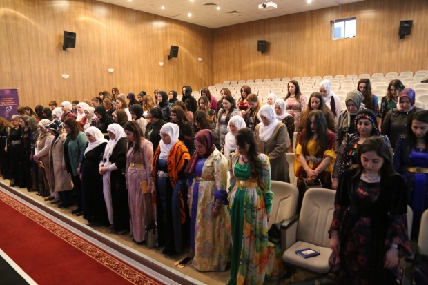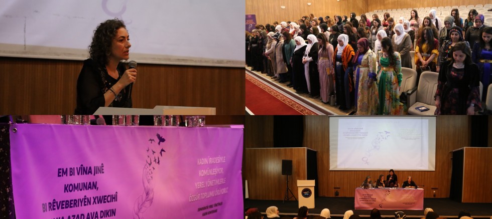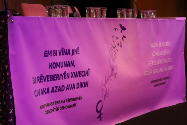 Konferans salonuna “Kadın İradesiyle Komünleşiyor, Yerel Yönetimlerle Özgür Toplumu Örüyoruz” yazılı pankartlar asılırken, kadın örgüsünün yer aldığı “Jin, jiyan, azadî” yazılı pankartlar da asıldı. Konferansta sık sık “Jin, jiyan, azadî” sloganları atıldı. Yöresel kıyafetleriyle konferansa katılan kadınlar, özgürlük ve demokrasi mücadelesinde yaşamını yitirenler anısına bir dakikalık saygı duruşuyla bulundu.